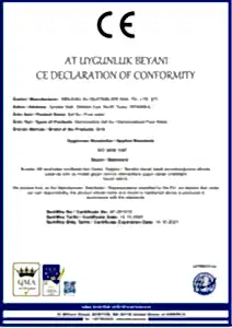 CE Uygunluk Sertifikası