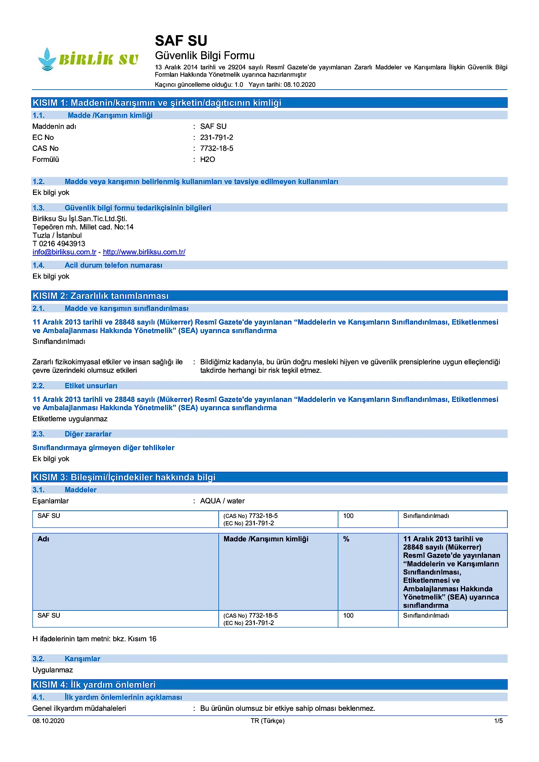 MSDS Güvenlik Belgesi