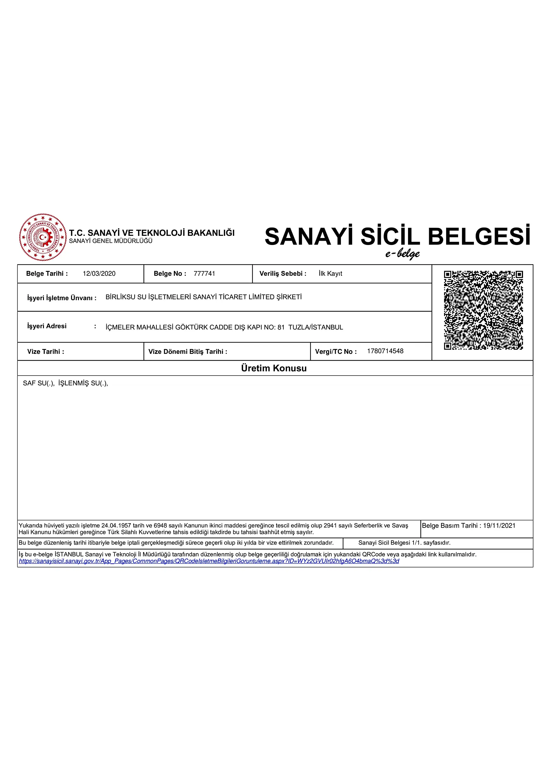 Sanayi Sicil Belgesi