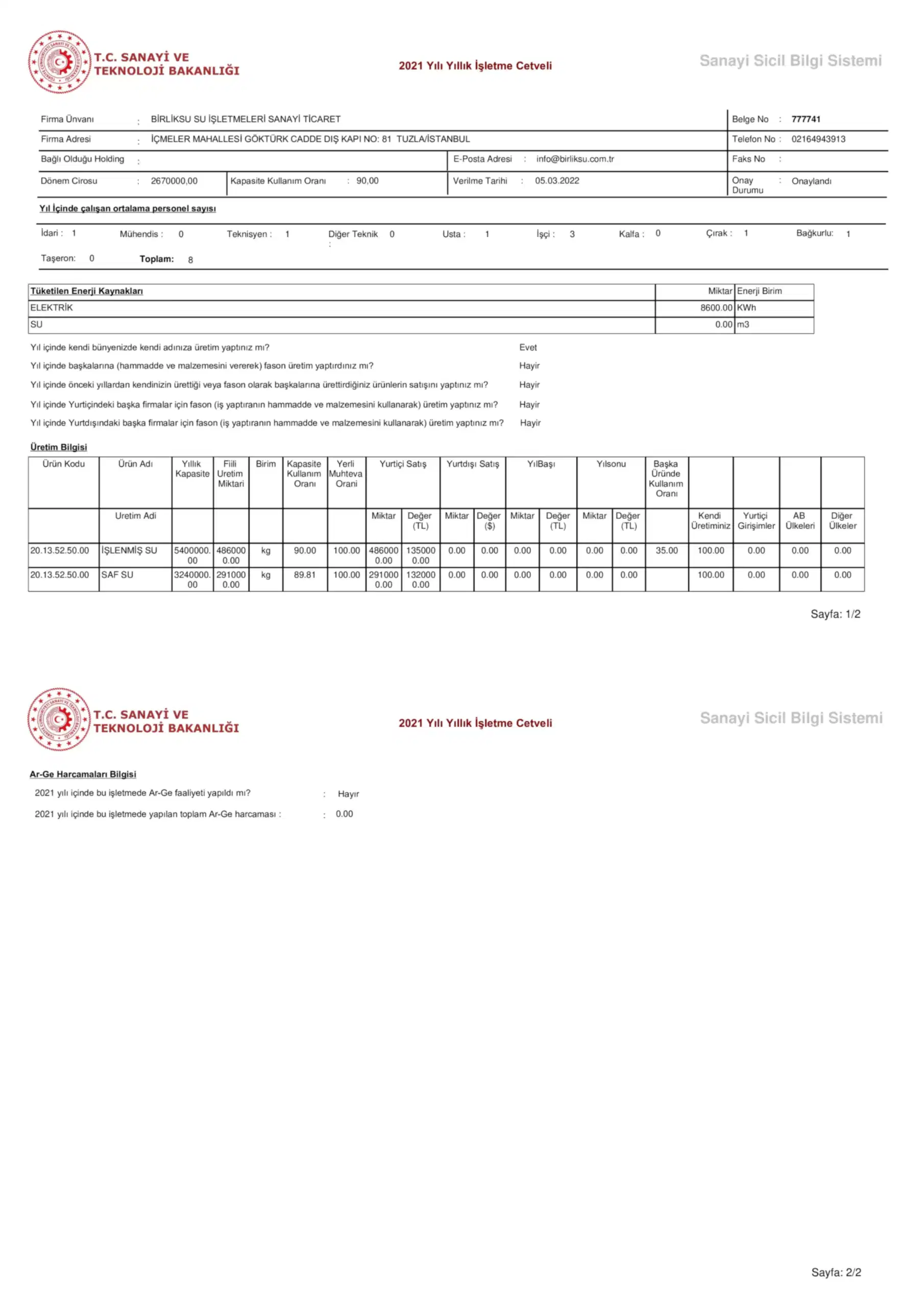 Sanayi Sicil İşletme Cetveli